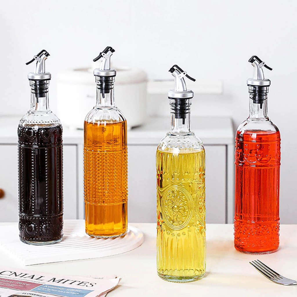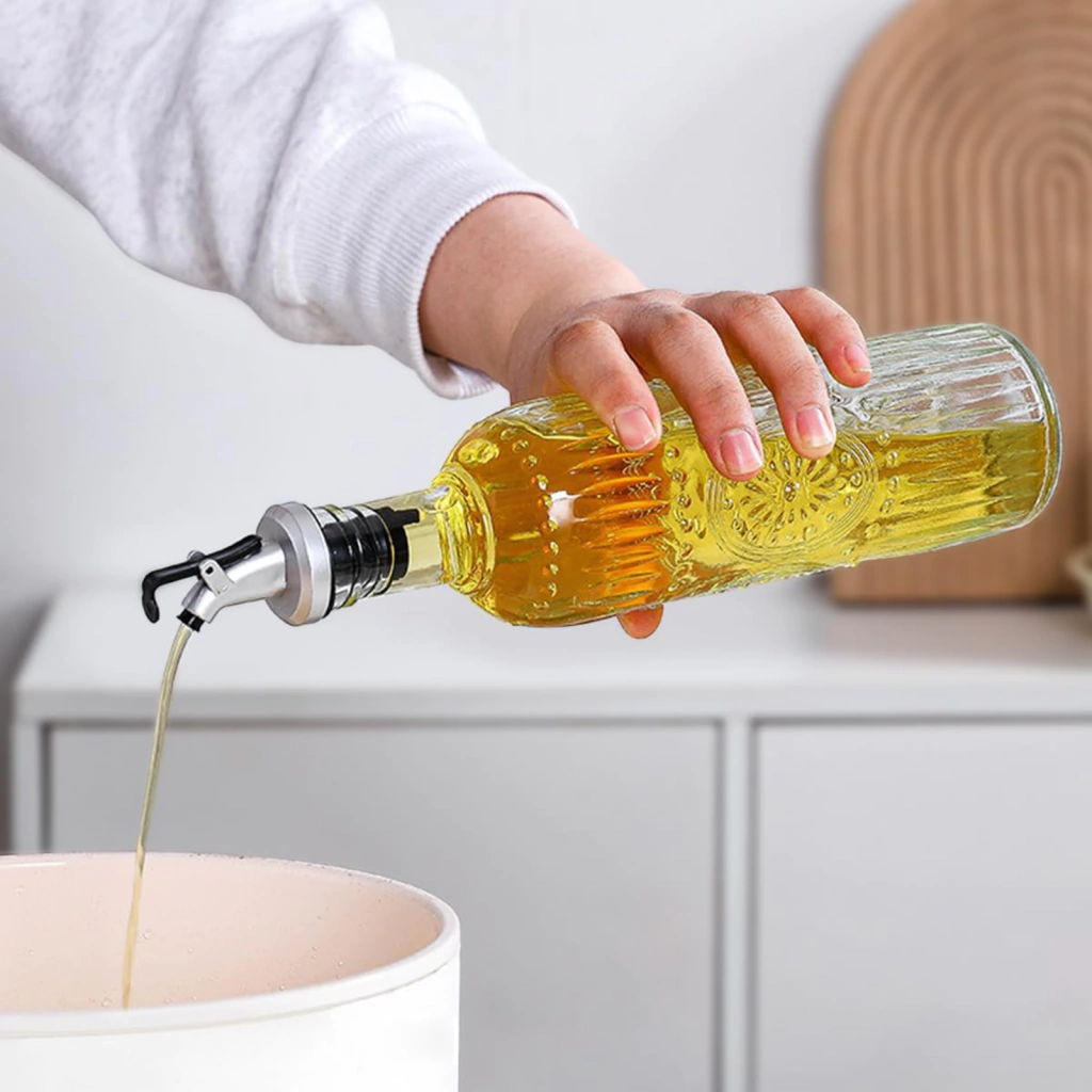 Es el recipiente ideal para tus aceites o vinagres. Su diseño de vidrio labrado te permite ver fácilmente el contenido y la cantidad restante mientras que agrega un aspecto decorativo a tu rutina diaria.