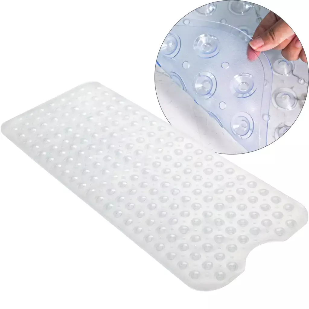 Asegura tu baño con esta alfombra antideslizante de PVC, diseñada para ofrecerte la máxima seguridad y confort mientras te duchas o te bañas.