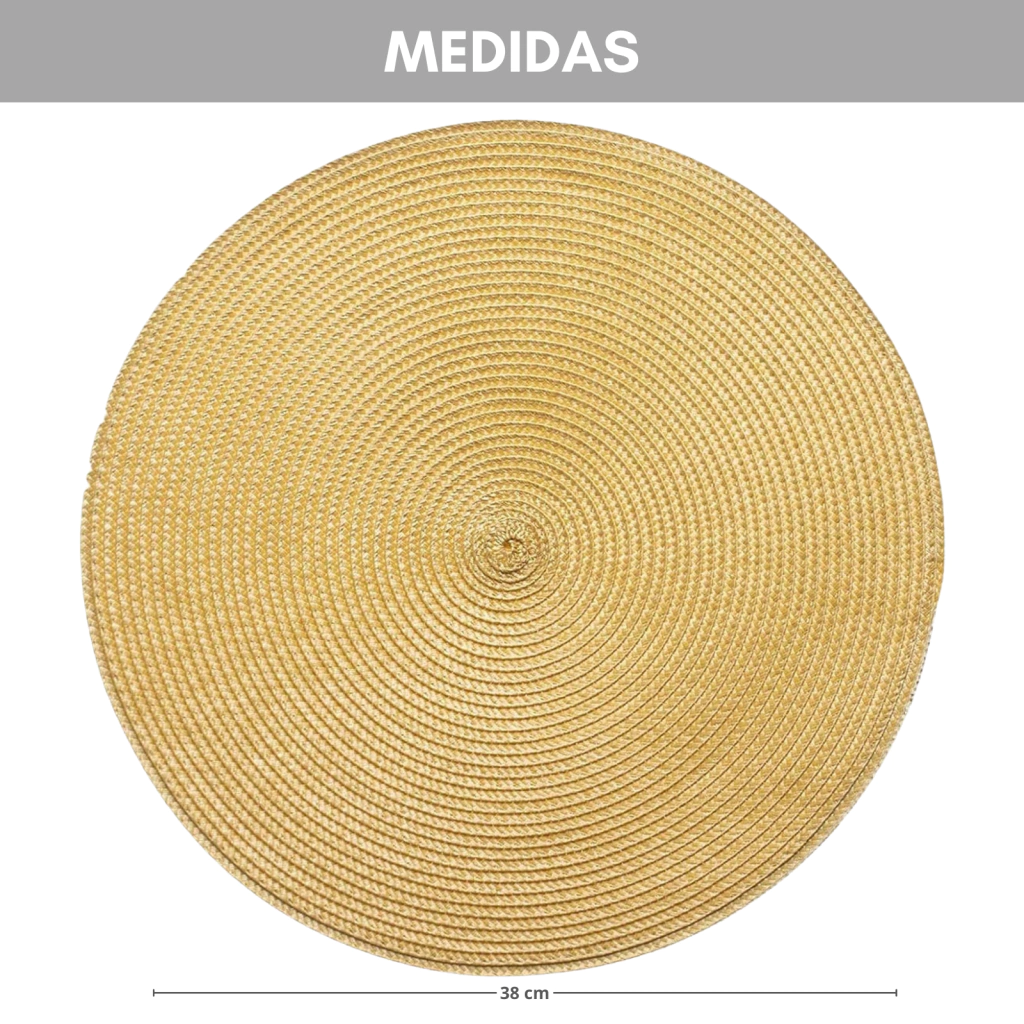Con un diámetro de 38 cm, proporciona un área amplia para platos, vasos y cubiertos.