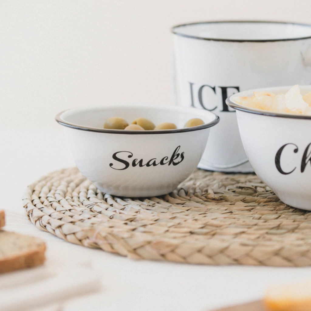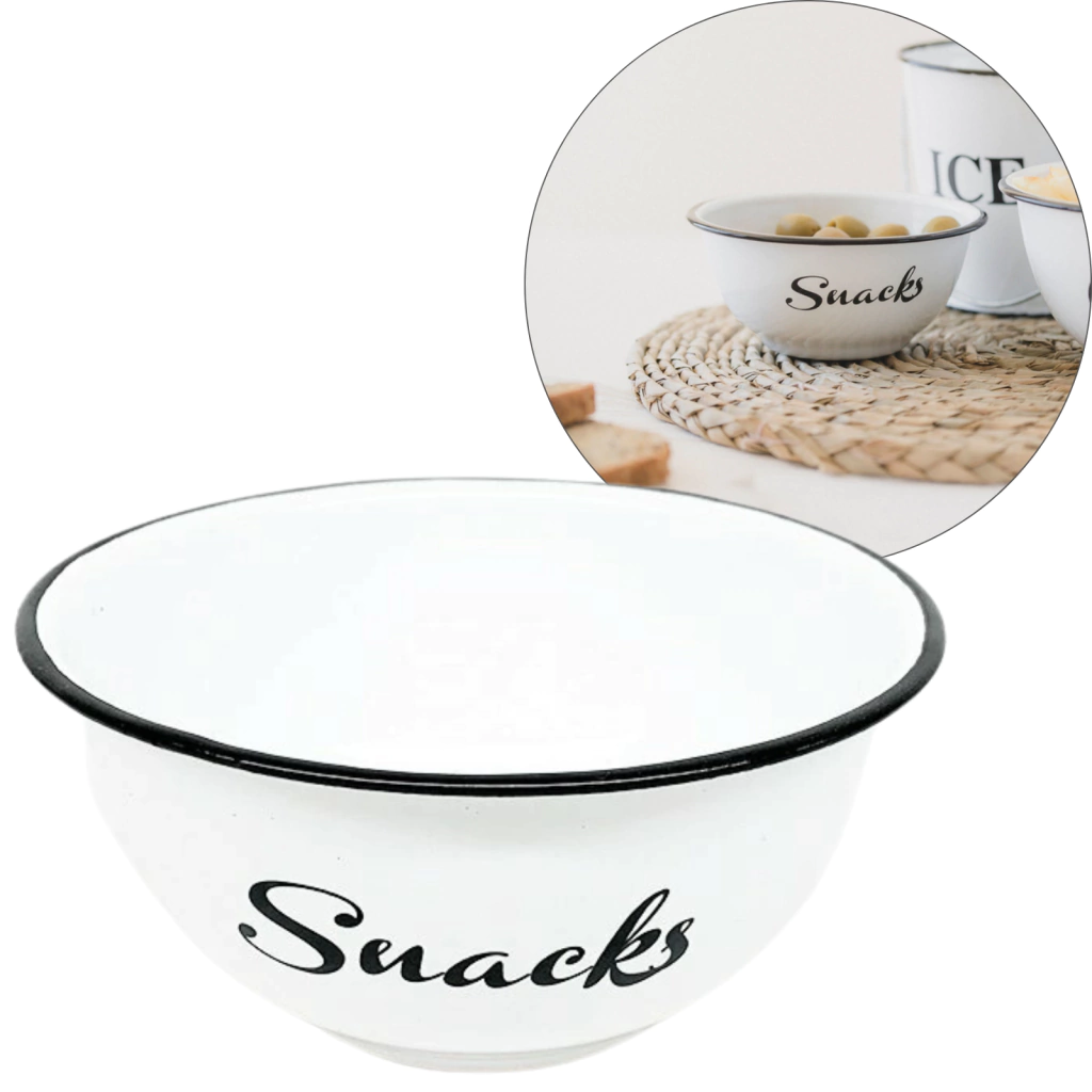 Este elegante bowl enlozado es una pieza decorativa y funcional, con un marcado estilo vintage que aporta un toque nostálgico y clásico a cualquier cocina o comedor.