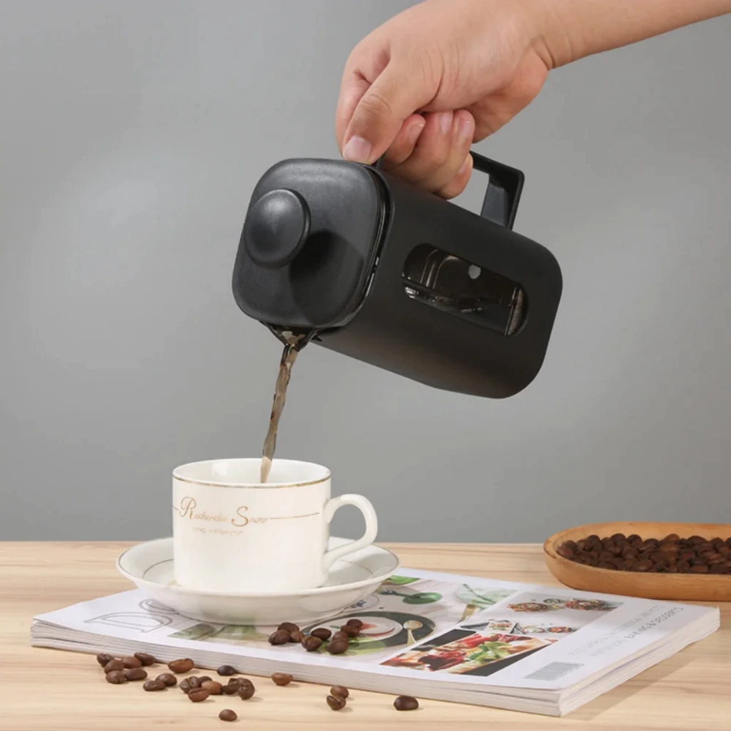 El émbolo eficiente asegura una extracción perfecta de los aceites y sabores del café, mientras que la estructura de plástico no solo añade una estética elegante, sino que también protege el interior de vidrio.
