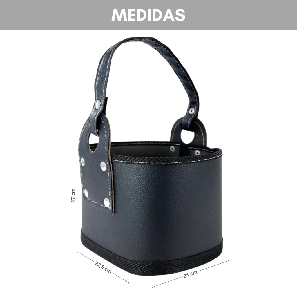 Fabricada en ecocuero, es resistente, duradera y fácil de limpiar. Ofrece espacio suficiente para yerba, azucar, termo, mate y más.