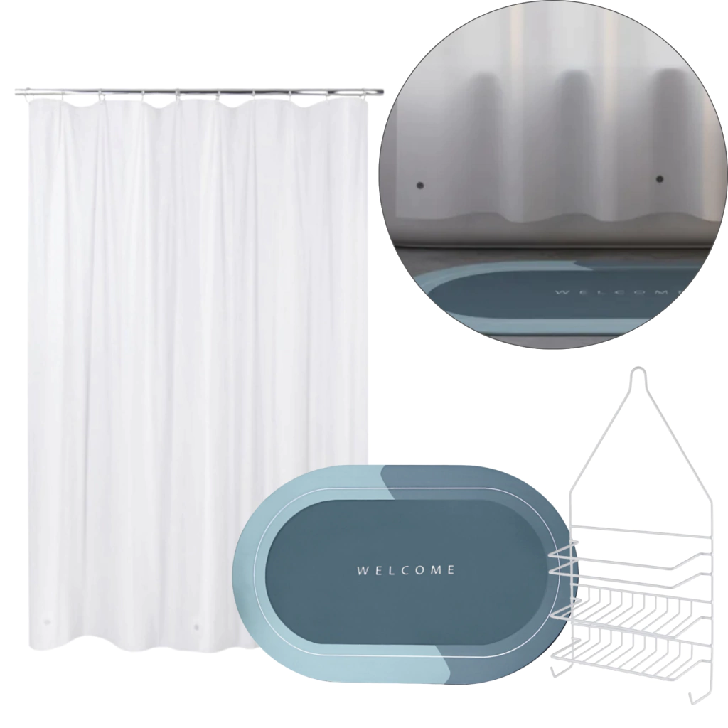 - Un protector de ducha con 2 imanes. Fabricado con PVC de calidad premium y ojales plásticos reforzados que aseguran mayor durabilidad. Los imanes se adhieren a la bañera, asegurando que la cortina permanezca en su lugar, evitando salpicaduras de agua fuera de la ducha. Es antihongos y antiestático.