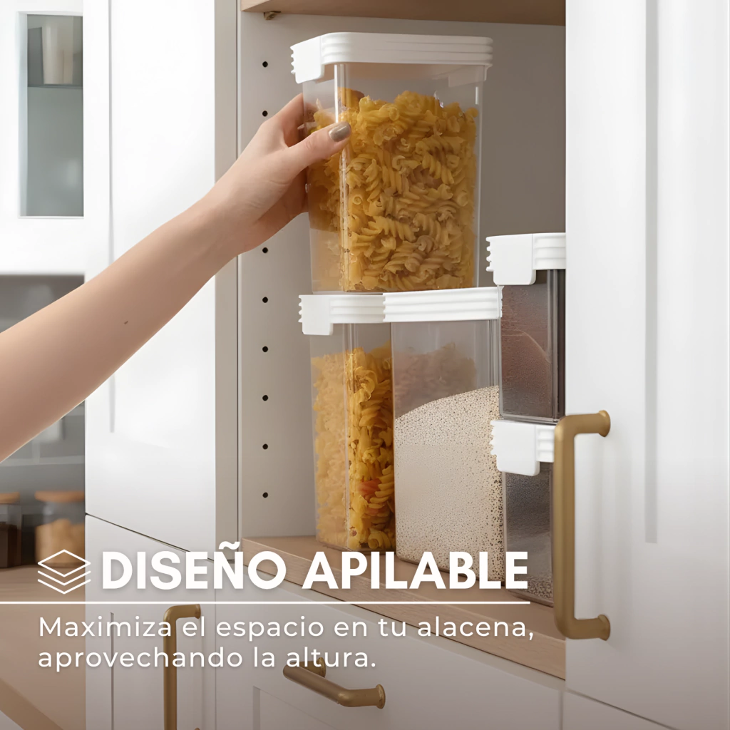 Su diseño apilable permite maximizar el espacio en tu alacena o heladera. Además, el acrílico transparente te permite identificar fácilmente los alimentos almacenados y mantener tu cocina organizada.