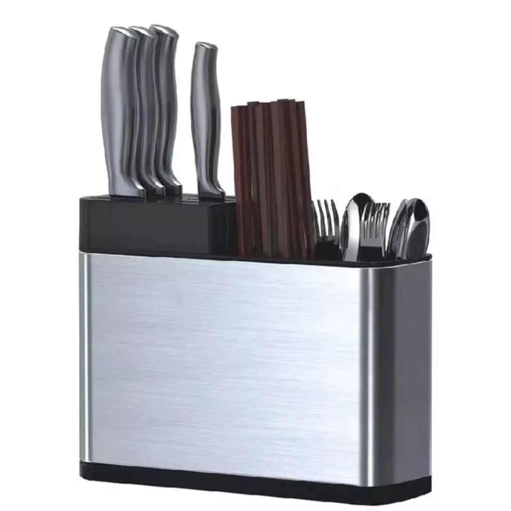 Mantené tus utensilios de cocina organizados y secos con este práctico escurridor para cubiertos. Su diseño combina la resistencia del acero inoxidable con la practicidad del plástico, ofreciendo un accesorio moderno, funcional y fácil de mantener.