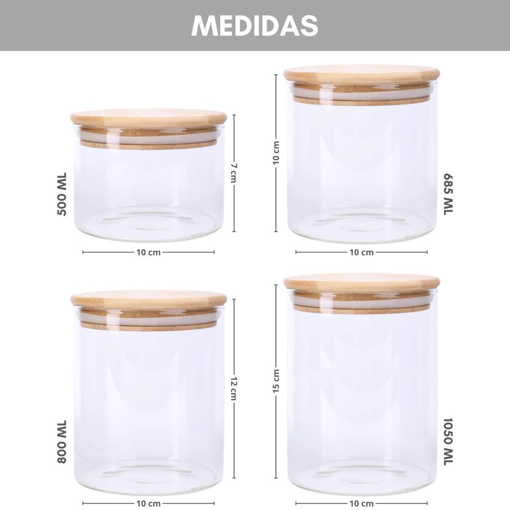 Este frasco es una opción ideal para aquellos que buscan una solución de almacenamiento funcional y estética. Su cierre hermético asegura la frescura de los alimentos, mientras que su diseño elegante y natural se integra perfectamente en cualquier cocina.