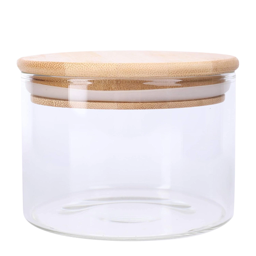 La tapa es de bamboo natural, no solo es duradera sino que también aporta un toque cálido y orgánico al diseño. Incluye un cierre hermético, lo que garantiza que el contenido del frasco se mantenga fresco y protegido de la humedad y el aire.