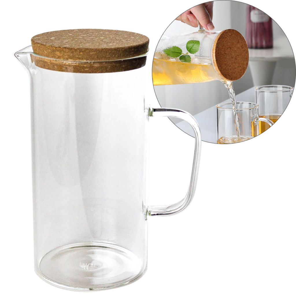 Esta jarra es perfecta para servir bebidas con elegancia y comodidad, gracias a su diseño transparente y funcional.