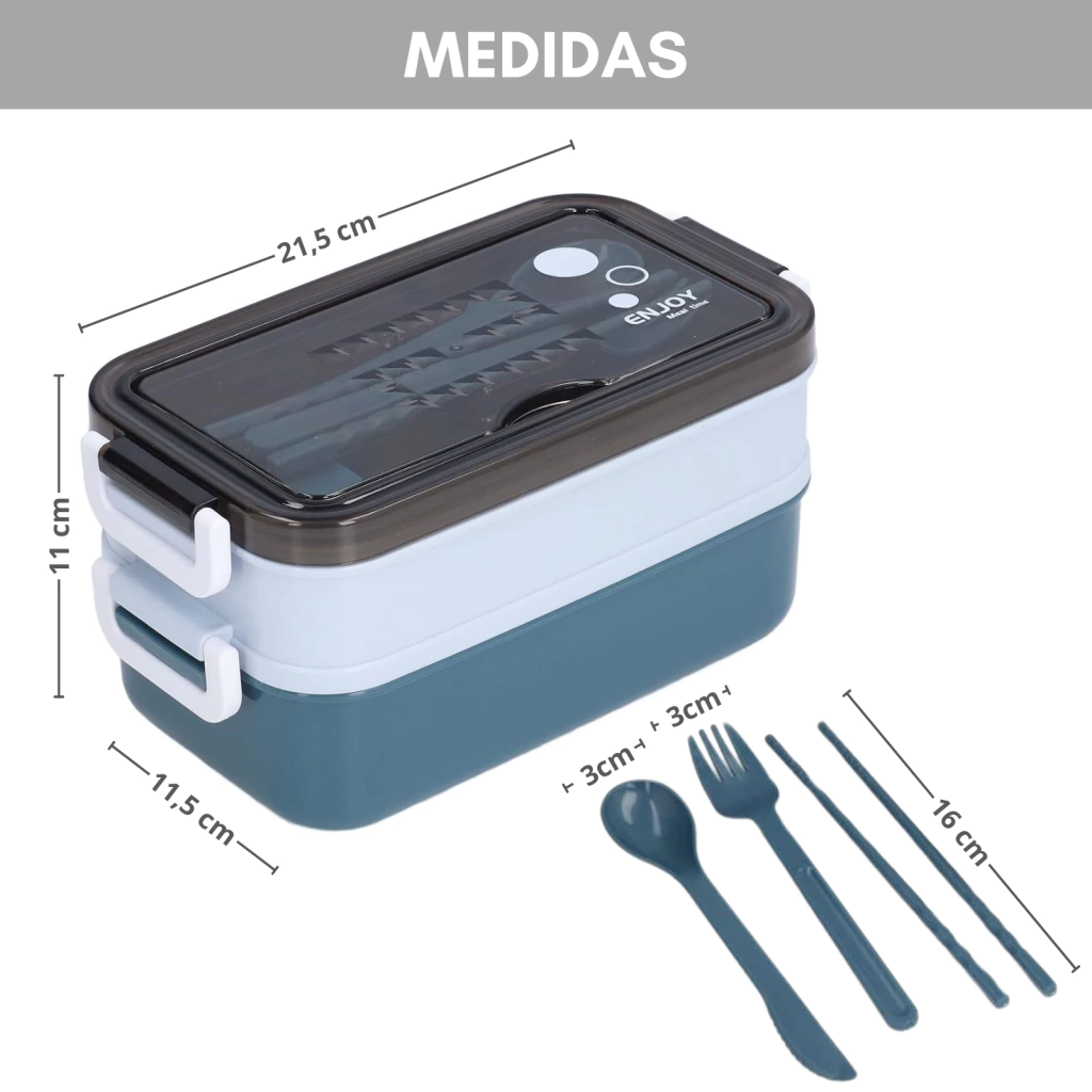 Ideal para llevar tus comidas de manera ordenada y práctica. Diseñada con compartimentos y utensilios incluidos, te facilita disfrutar de tus alimentos en cualquier lugar, manteniendo todo organizado y fresco.