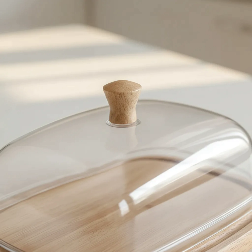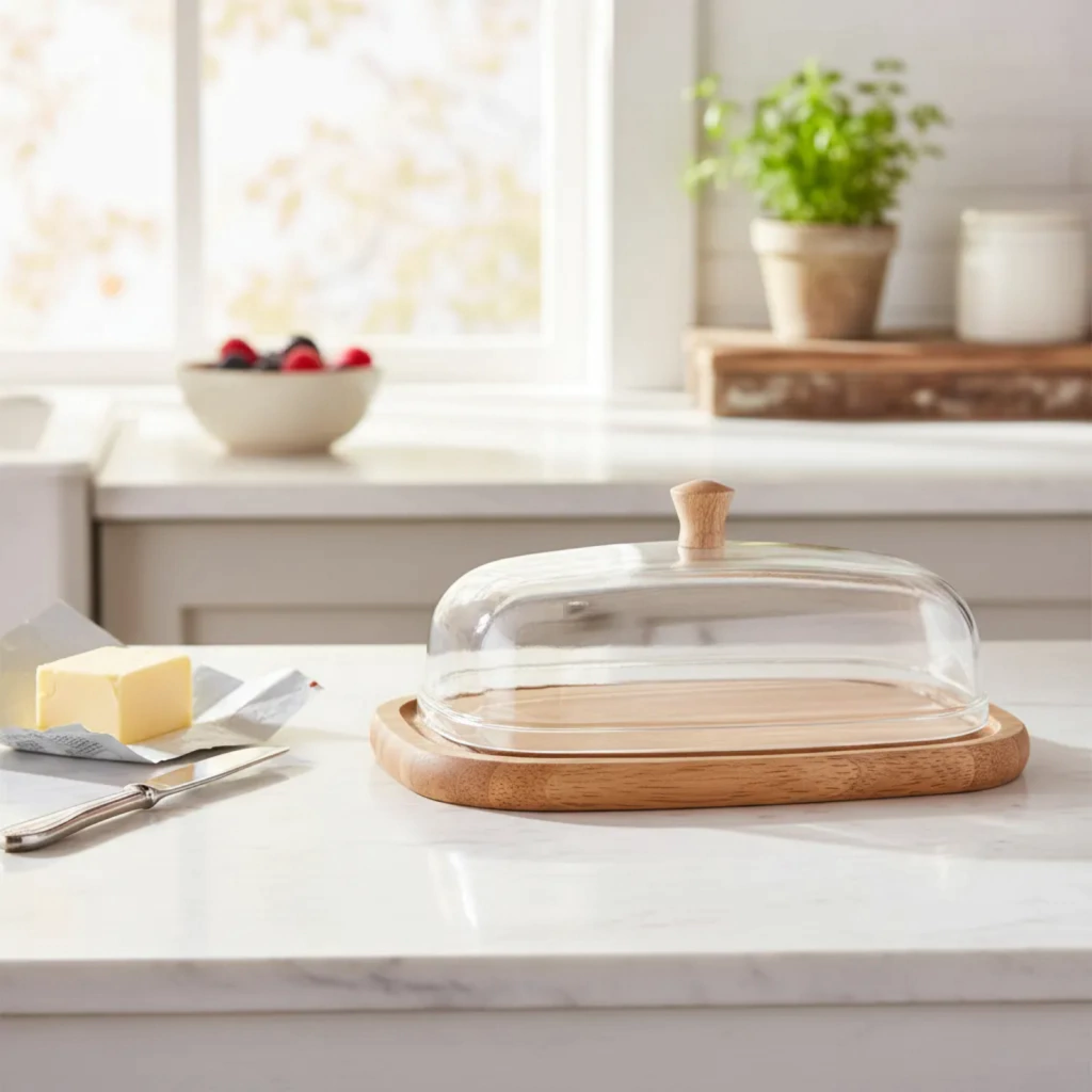 Hecha de acrílico y bamboo, esta mantequera es liviana y resistente a los golpes, garantizando una mayor vida útil y facilidad de manejo en la cocina.