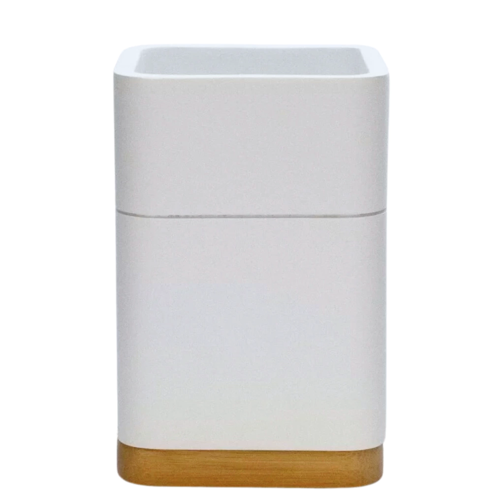 El vaso está fabricado en resina de alta calidad, ideal para soportar el uso diario sin perder su forma ni deteriorarse con el tiempo. Es fácil de limpiar, lo que lo convierte en una opción perfecta para el baño.