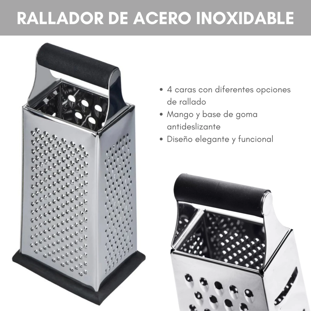 Este rallador de 4 caras es un utensilio indispensable que combina funcionalidad, comodidad y durabilidad, mejorando la experiencia en la cocina con cada uso.