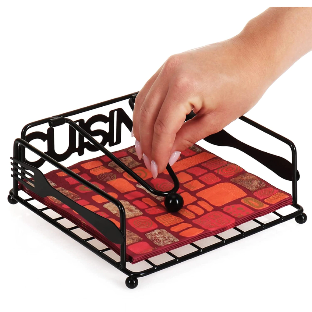 -Durabilidad excepcional: Fabricado con metal resistente, este servilletero está diseñado para durar.