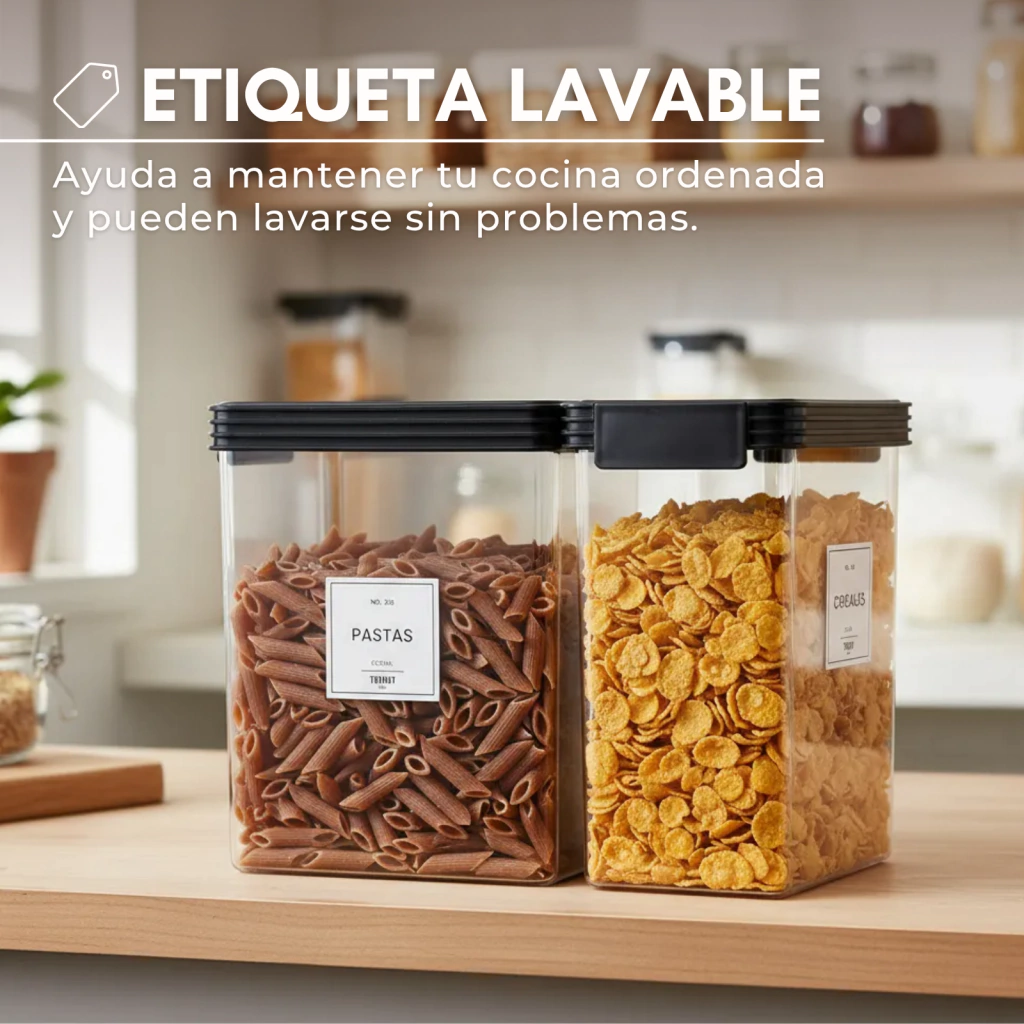 Las etiquetas y el acrílico transparente te permiten identificar fácilmente los alimentos almacenados y mantener tu cocina organizada.