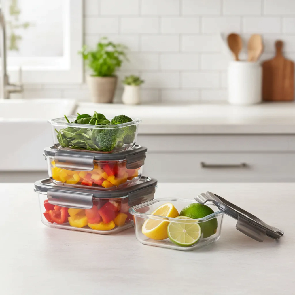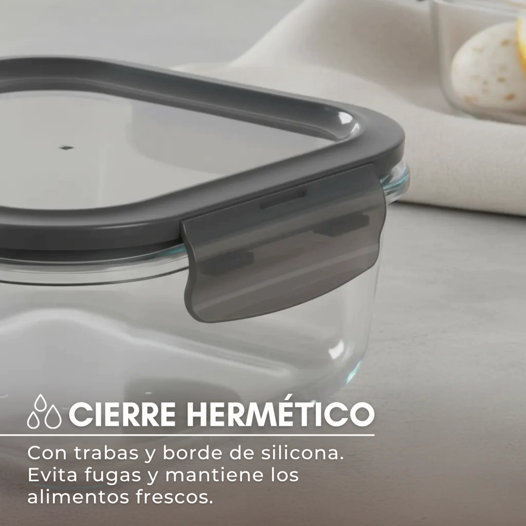 Este set de contenedores herméticos de vidrio es perfecto para el almacenamiento y transporte seguro de tus alimentos, ideal para el uso diario.