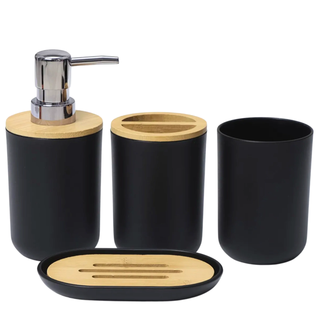 Renová tu baño con este sofisticado set de accesorios que combina materiales de alta calidad para un diseño moderno y cálido. Perfecto para quienes buscan organizar su baño con estilo y practicidad.